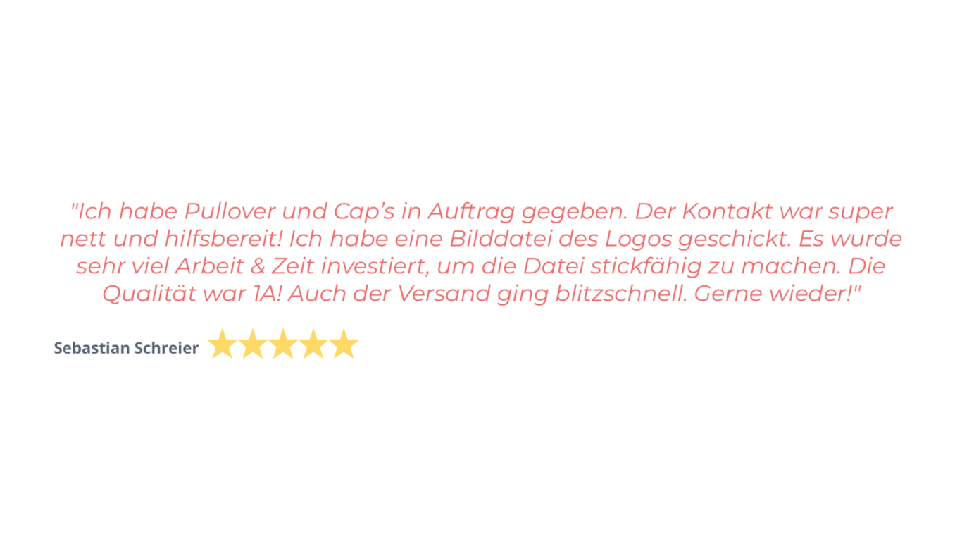 Ist die Stickdatei einmal erstellt, liefern wir in der Regel innerhalb von ca. 14 Werktagen.